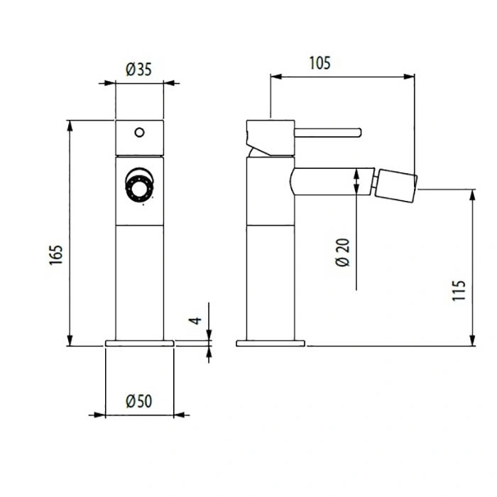 • Смеситель для биде из нержавеющей стали.