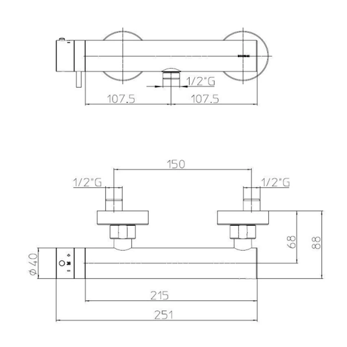 - Тип: наружный смеситель для душа (накладной монтаж).