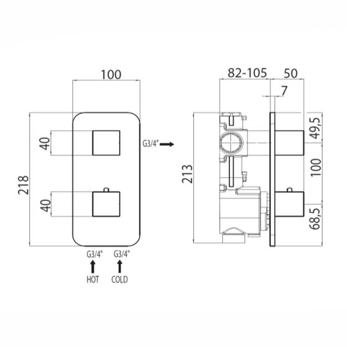 «Встраиваемая панель» означает, что лицевая часть смесителя (с рукоятками) монтируется заподлицо с поверхностью стены или душевой перегородки, создавая стильный скрытый вид. «Переключатель на 1/2 выхода» означает, что смеситель управляет потоком воды между двумя точками: например, между верхним душем и ручным душем или между душем и изливом для ванны.