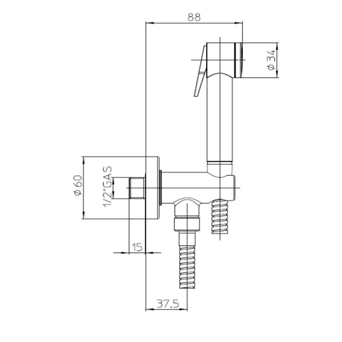 - Полная комплектация: лейка для гигиенического душа, настенный держатель, соединительный шланг.