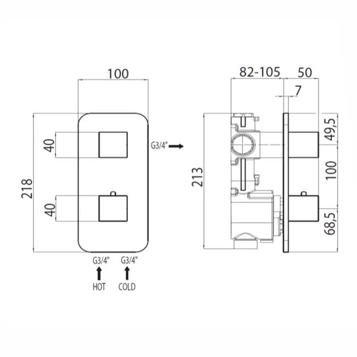Этот термостатический смеситель для душа класса премиум обеспечивает точный контроль температуры и безопасное принятие водных процедур. Модель предназначена для скрытого монтажа в душевой кабине или стене и идеально подходит для организации комфортного душа в современной ванной комнате.