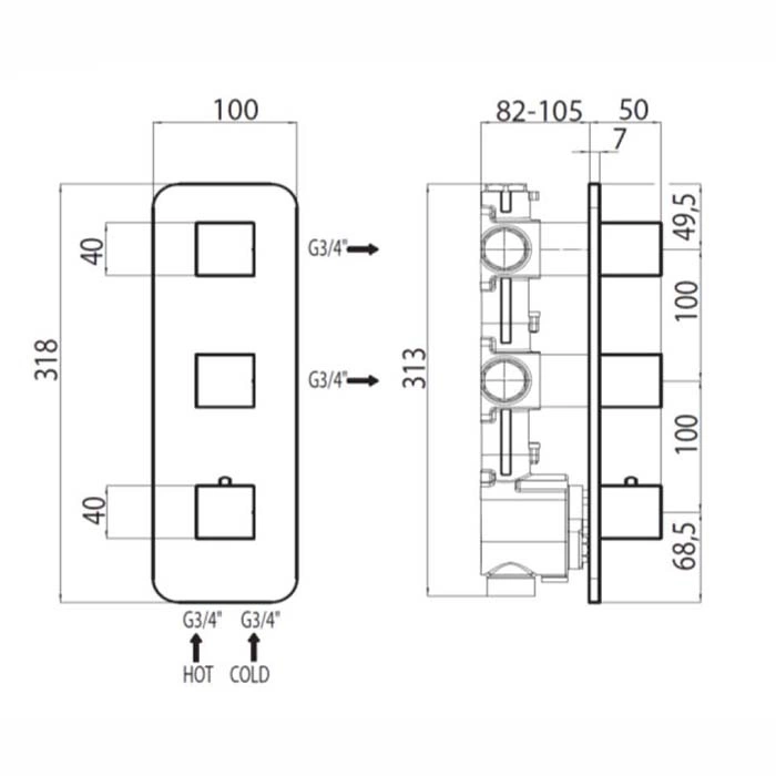 Прямоугольная лицевая панель из хромированной латуни имеет строгий дизайн и легко вписывается в любую интерьерную концепцию. Встраиваемый монтаж предполагает установку механизма в специальную монтажную коробку (нишу) в стене, что позволяет добиться идеально плоской поверхности и визуальной лаконичности.