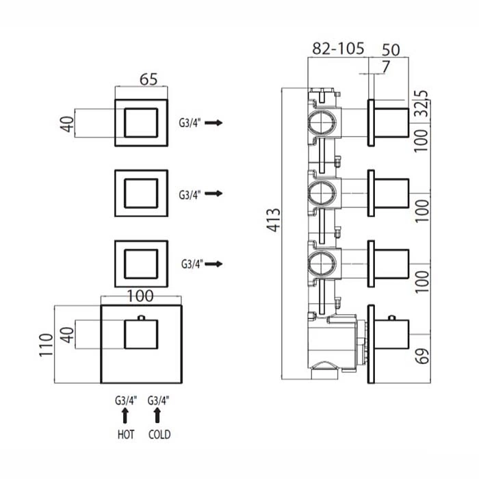 Вопросы и ответы о термостатическом смесителе для душа Bossini прямоугольном, на 3-6 выходов, вертикальный монтаж, хром (Z033205.030)