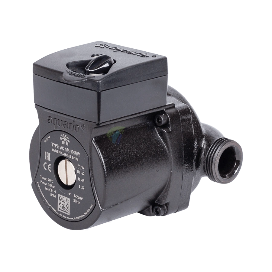 Насос Aquario AC 154-130HW обладает тремя регулируемыми скоростями, что позволяет точно настроить производительность под параметры вашей системы и существенно экономить электроэнергию. Переключение между режимами выполняется вручную, с помощью переключателя на корпусе.