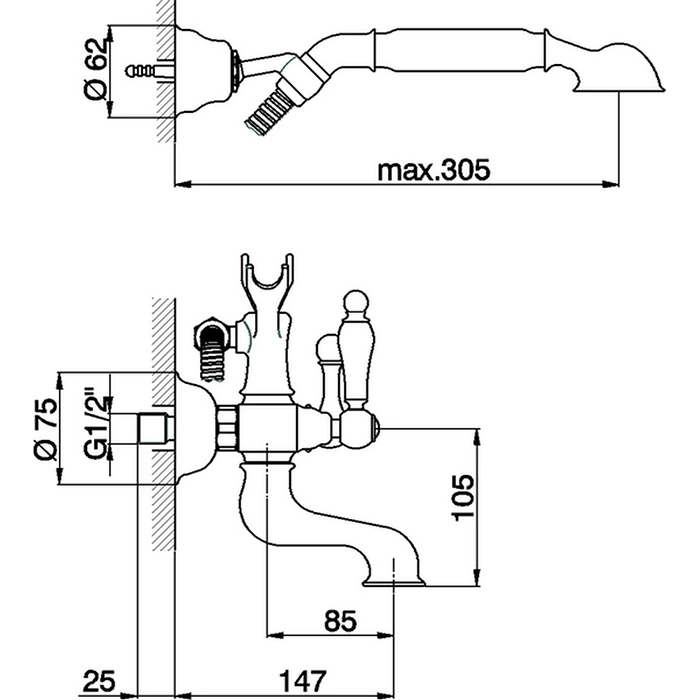 Модель Arcana Toscana создана для установки над ванной и позволяет мгновенно переключаться между краном и душем с помощью удобного дивертора. В основе работы — надежный керамический картридж, который обеспечивает плавную регулировку температуры и напора воды без протечек. Длинный излив обеспечивает комфортный набор воды в глубокую ванну.
