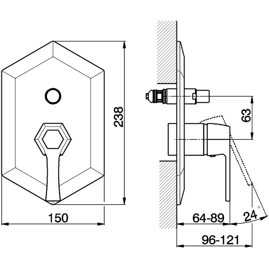 Это скрытый механизм управления для настенного смесителя, который устанавливается в стену на этапе ремонта. Он обеспечивает надежное и плавное смешивание горячей и холодной воды для комбинированных систем ванна/душ.