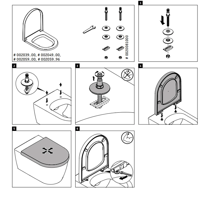 Быстросъемное сиденье Duravit Architec устанавливается без инструментов. Петли оснащены защелками, которые позволяют легко снять и надеть сиденье для очистки. Для монтажа закрепите петли на унитазе с помощью болтов, затем защелкните сиденье до щелчка.