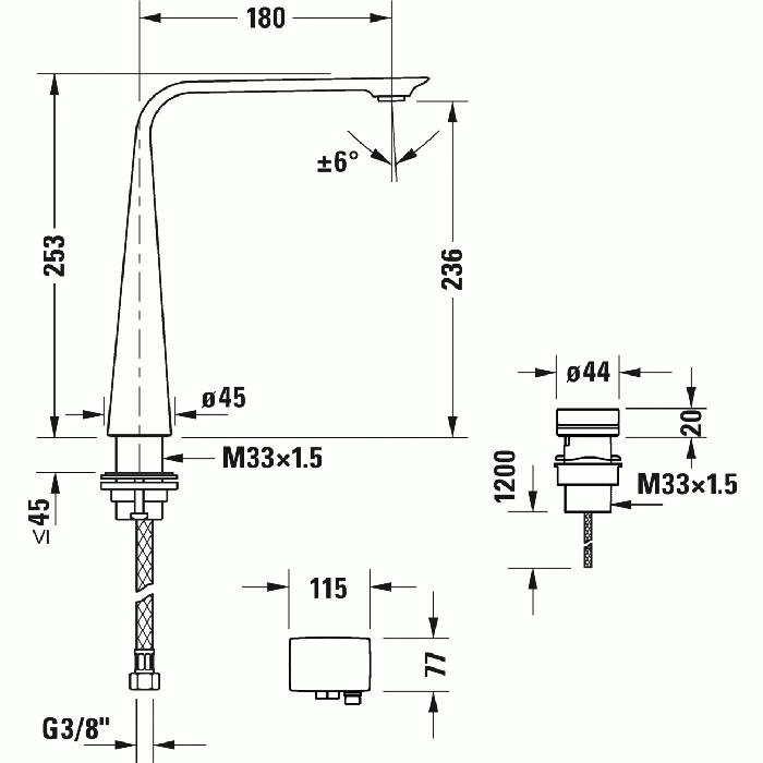 Модель работает от электрической сети, что гарантирует стабильную и надежную работу датчика без зависимости от батареек. Этот электронный смеситель для раковины поставляется в комплекте с необходимым оборудованием для монтажа.