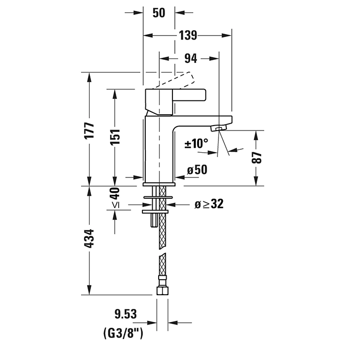 Смеситель для раковины Duravit D-Neo, хром, 1 отверстие, без донного клапана (DE1010002010)