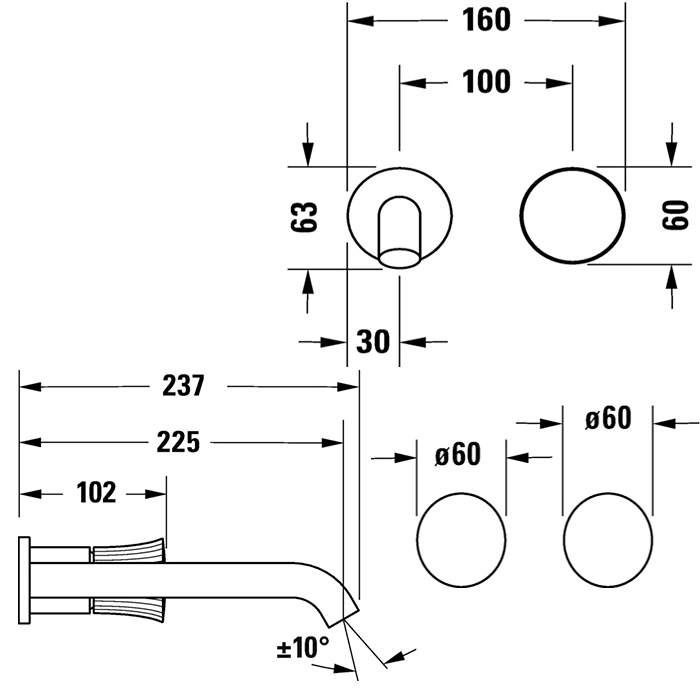 Смеситель для раковины Duravit White Tulip встраиваемый, хром, излив 225 мм (WT1070004010)