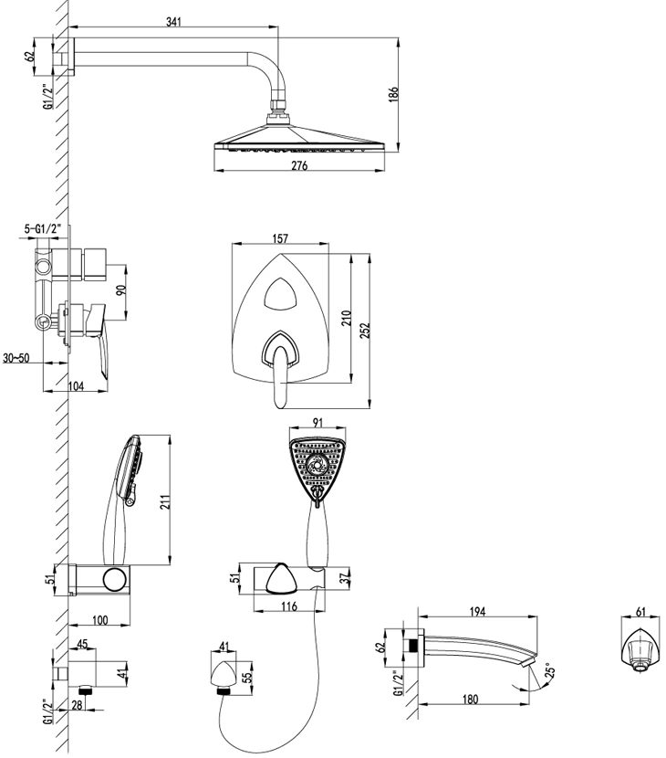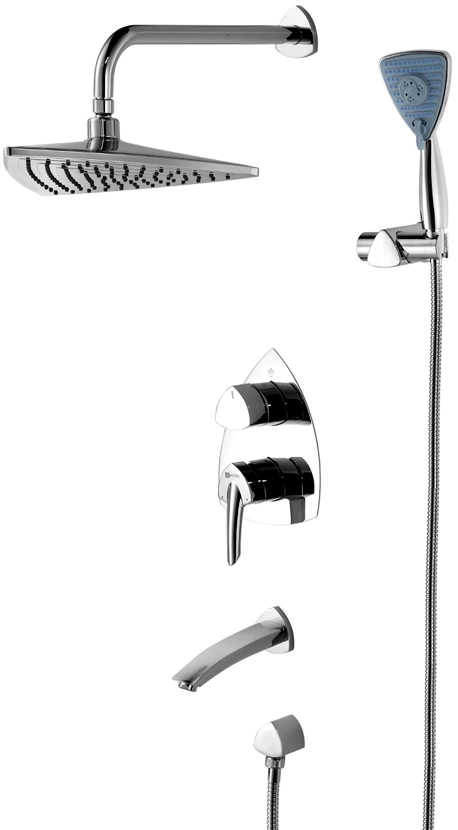 В полный комплект входят все необходимые элементы для монтажа. Вы получите верхний душ (лейку), гибкий шланг в металлической оплетке, ручной душ, крепежные элементы и декоративные накладки, а также систему крепления для ручного душа.