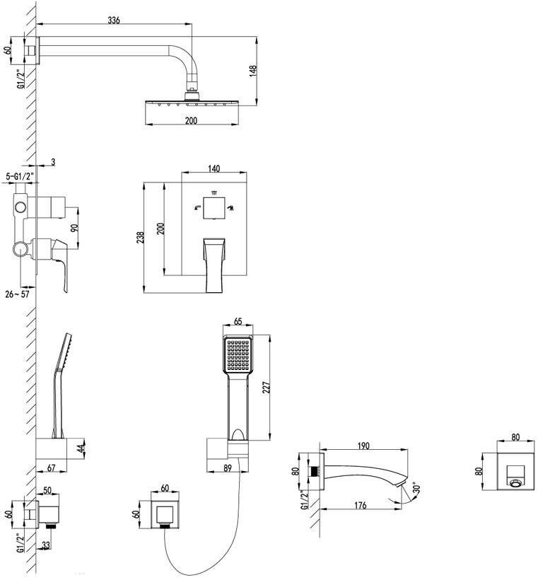 В полный комплект входит все необходимое для монтажа: термостатический смеситель, верхний душ, ручной душ, душевая стойка, лейка для биде, все необходимые соединительные шланги и декоративные элементы. Вам останется приобрести только трубы для скрытого подключения и пригласить сантехника для профессиональной установки.