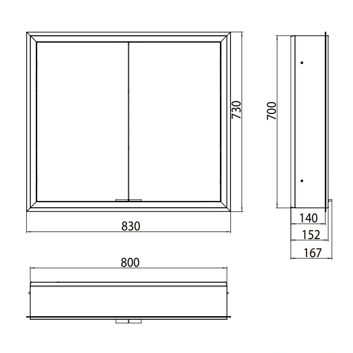 Шкаф имеет глубину 160 мм, что позволяет разместить внутри стандартные банки и флаконы. Для монтажа предусмотрена надежная система скрытого крепления. Модель поставляется в полной комплектации, включая все необходимые крепежные элементы, лампы и блок питания для подсветки.