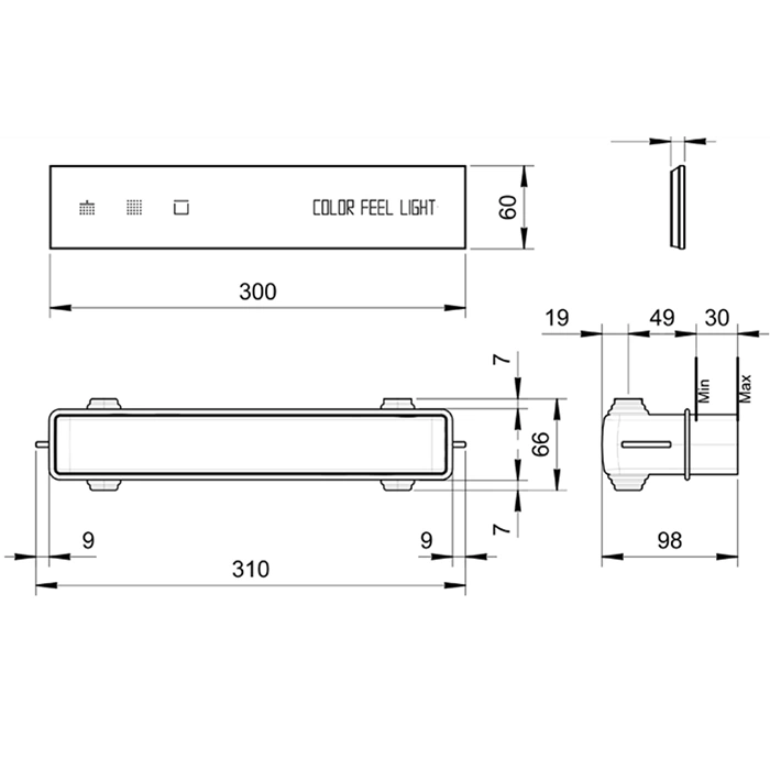 В комплект поставки данной панели управления (внутреннего блока) входит сама лицевая панель с элементами управления и механизмом. Смесительная часть, внешний электронный блок, блок питания, термостат и другие компоненты системы приобретаются отдельно, согласно выбранной конфигурации.