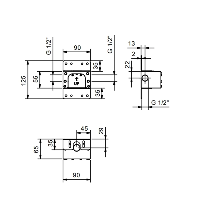 Тип монтажа «Top-mount» означает, что панель устанавливается в предварительно подготовленное отверстие в стене душевой кабины или ниши сверху. Лицевая декоративная панель при этом находится с внешней стороны, закрывая края отверстия и места соединений, что обеспечивает аккуратный и законченный вид.
