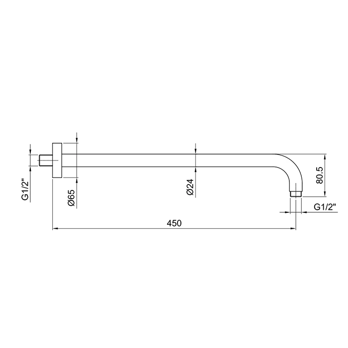 Длина выноса (вылета) данного кронштейна составляет 45 см от стены до центра лейки. Это стандартный и удобный размер для комфортного принятия душа. Положение кронштейна регулируется по высоте в процессе монтажа, что позволяет установить верхний душ на оптимальной для вас высоте.