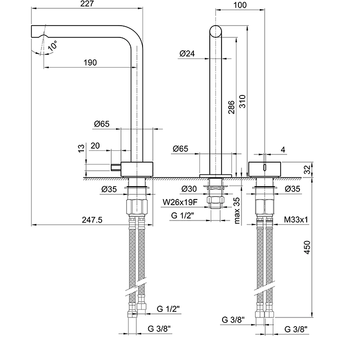 - Смеситель совместим со всеми типами раковин и столешниц стандартной толщины.