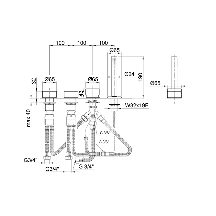 Смеситель Fantini AF/21 рассчитан на монтаж в четыре отверстия на борту ванны. Стандартное межосевое расстояние позволяет гармонично интегрировать его с большинством современных моделей ванн.