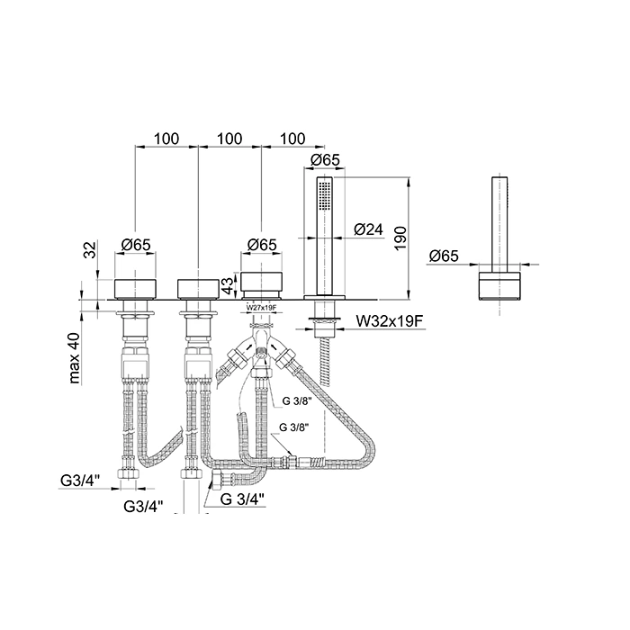 - Тип установки: на борт ванны или столешницу (на 4 отверстия).