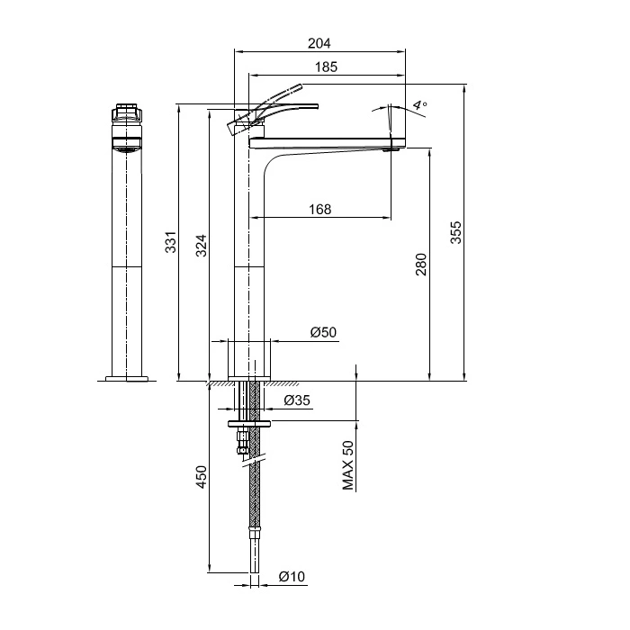 - Излив длиной 170 мм: оптимальная высота и вылет для комфортного пользования раковиной.