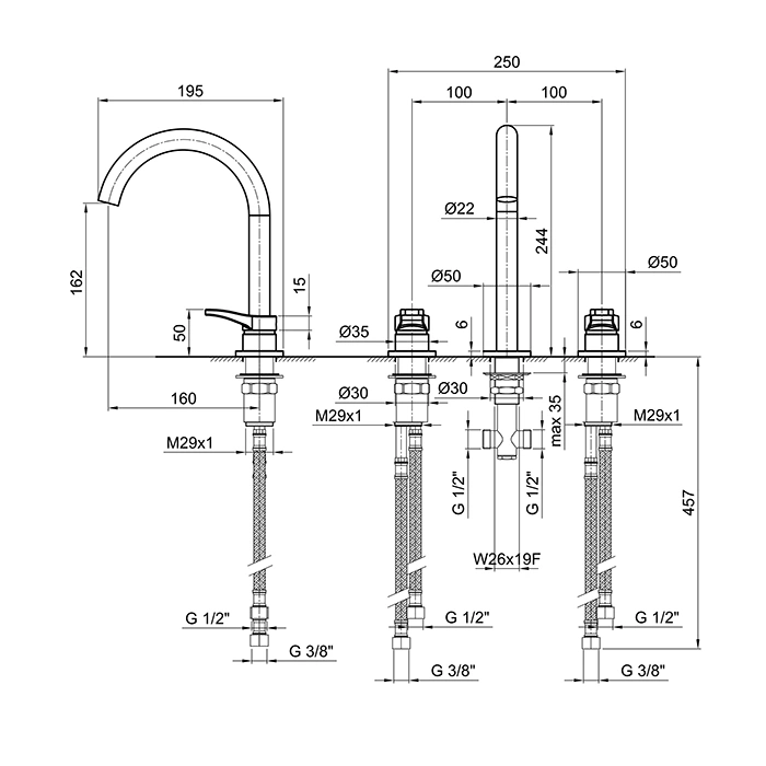 Всегда обращайте внимание на тип монтажа. Смеситель на три отверстия - это классический и самый надежный вариант для большинства моек. Он обеспечивает максимальную устойчивость конструкции за счет распределения точек крепления. Перед покупкой обязательно сверьте межосевое расстояние посадочных отверстий на вашей раковине или столешнице с параметрами смесителя (26 02 B204WF), чтобы избежать проблем с установкой.