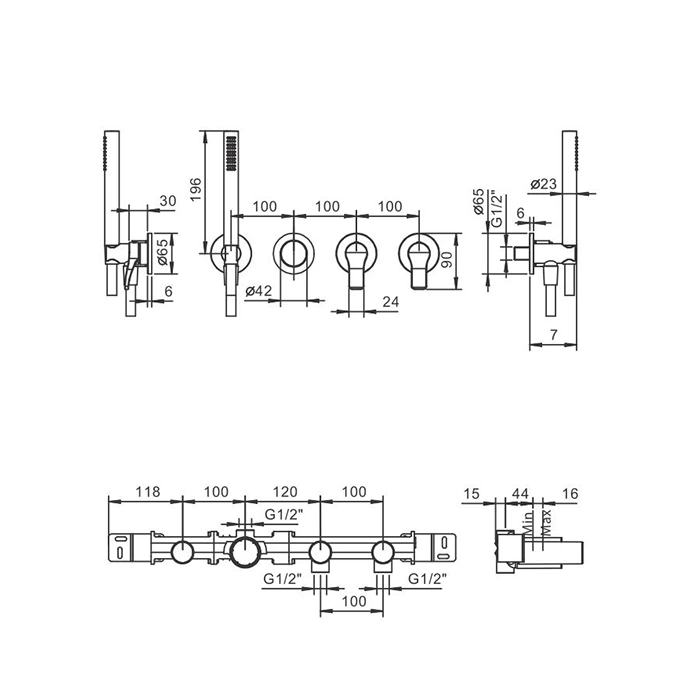 Эта модель без излива рассчитана на использование с настенным или потолочным душем и отдельным spout для наполнения ванны. Заранее продумайте и разметьте расположение всех элементов системы. Малейшая ошибка в выносе точек выхода воды приведет к перекосам и напряжению в трубных соединениях, что чревато протечками в будущем.