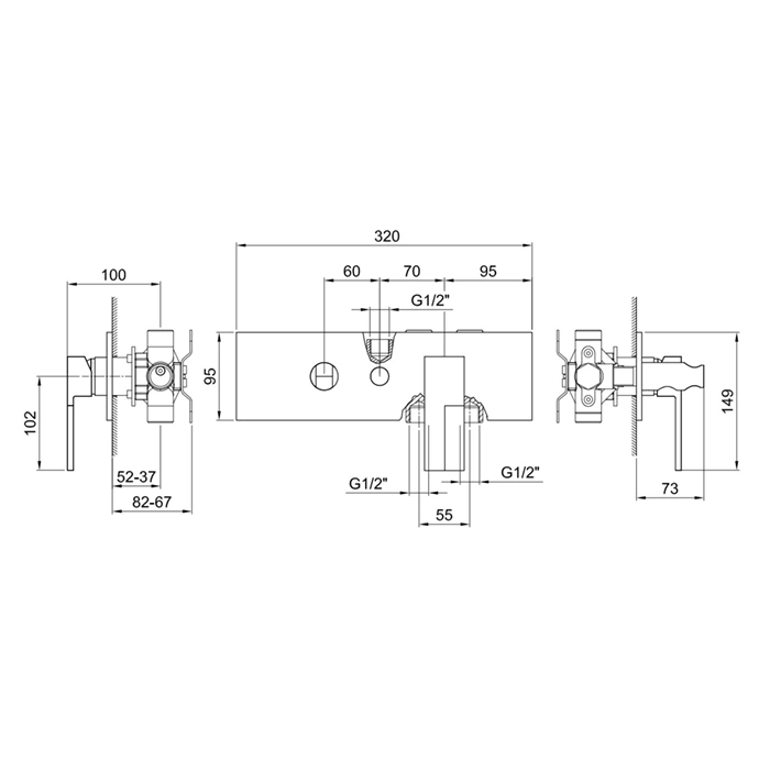 Данная модель предназначена для скрытого (встраиваемого) монтажа. Основной механизм и соединения устанавливаются в заранее подготовленную нишу в стене, что требует строительных работ. На финальном этапе монтируются декоративные панели, элементы управления и изливы.