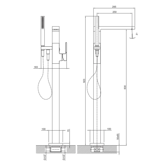 Модель AR/38 предназначена для стационарной установки рядом с отдельно стоящей или приставной ванной. Он является оптимальным решением для ванн без предусмотренных отверстий под смеситель, создавая элегантный и современный облик.