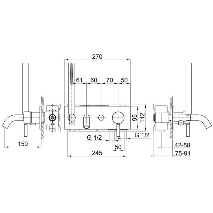 Короткий излив (около 50 мм от стены) идеально подходит для установки на борт ванны или на стену непосредственно над ванной. Такая конструкция экономит пространство и обеспечивает комфортное наполнение ванны, при этом струя не бьет далеко от края, что минимизирует разбрызгивание.