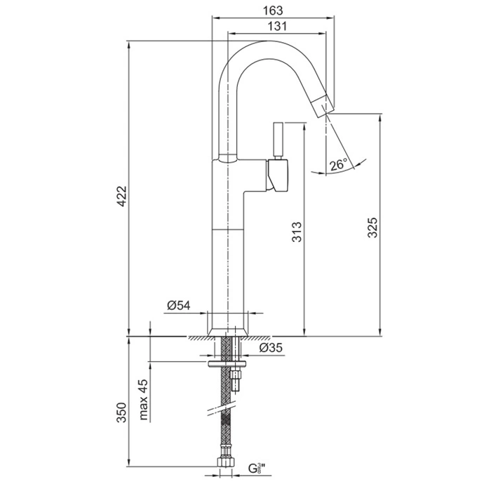 Данная модель предназначена для стандартного монтажа на раковину или столешницу (монтируется в одно отверстие). Диаметр монтажного отверстия - стандартные 35 мм.