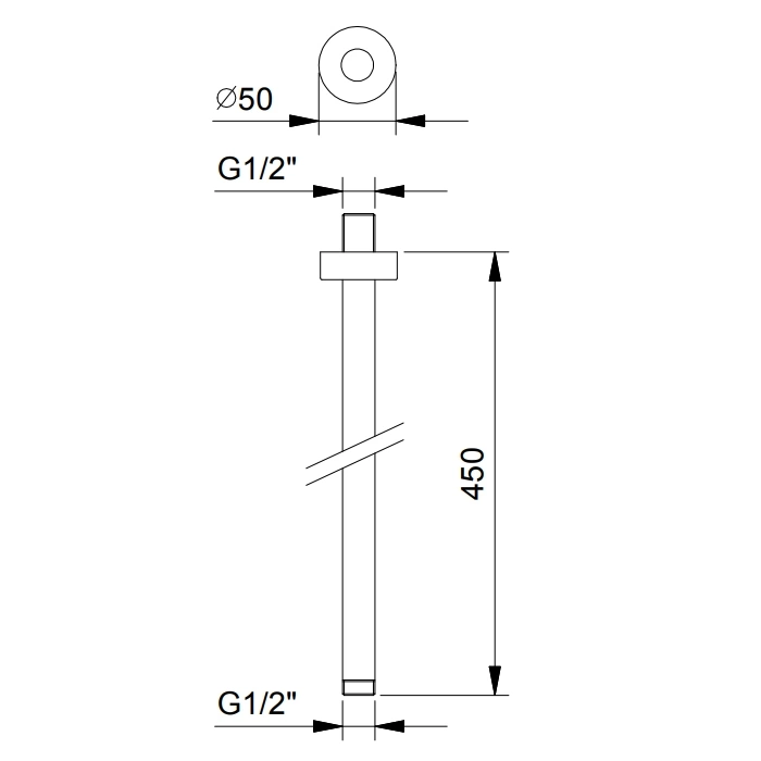 - Универсальная длина 450 мм: оптимальное расстояние для комфортного размещения душевой системы на стандартной высоте потолка.