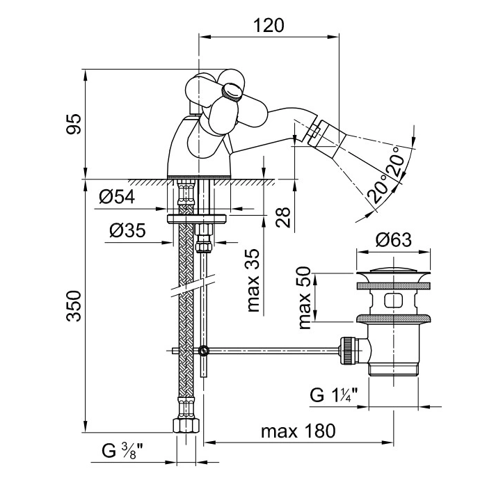 Модель 60 29 0562F относится к категории настенных смесителей, требующих монтажа в одно отверстие. Ее конструкция предусматривает встроенный донный клапан - важный элемент для гигиеничного и корректного функционирования биде. Основные отличительные черты данного смесителя: