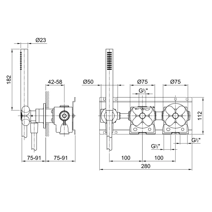 «Встраиваемый на 2 выхода» означает, что данный термостатический смеситель скрыто монтируется в стену и управляет подачей воды к двум точкам: верхнему душу и ручному (гибкому) душу. Точные монтажные размеры и габариты корпуса указаны в технической документации. Перед покупкой и подготовкой ниши необходимо свериться с чертежами для конкретной модели (60 29 0384B).