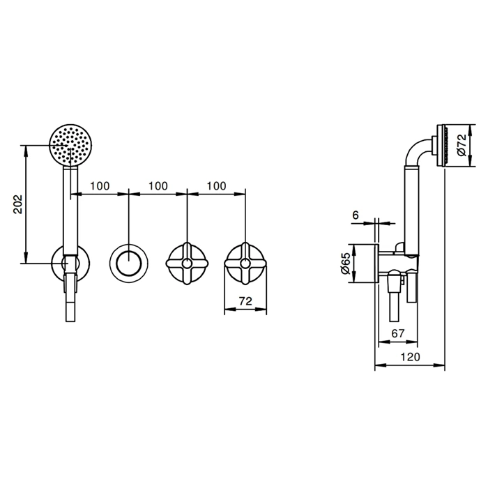 Смеситель для душа Fantini Icona Classic встроенный на 2 выхода с ручным душем хром (53 02 R017B)
