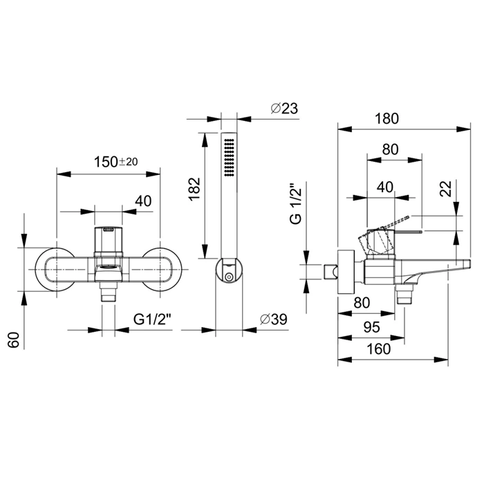 В комплект входит сам настенный смеситель с изливом, ручной душ, соединительный шланг для душа, декоративная накладка для скрытия подключений и необходимый крепеж. Обратите внимание, что подводящие трубопроводы (водорозетки) и держатель для ручного душа приобретаются отдельно.