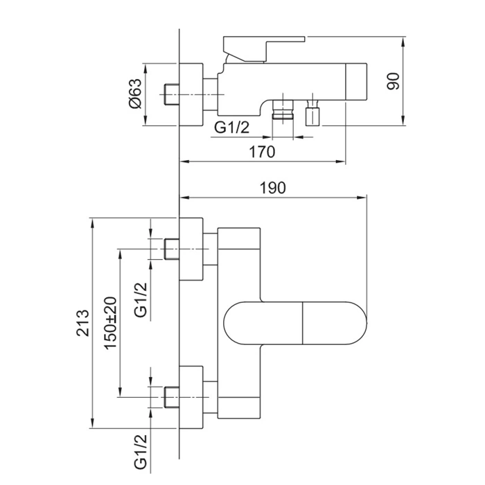 Длина излива данной модели составляет 170 мм. Этот размер является оптимальным для настенного монтажа над ванной, обеспечивая достаточный вынос для комфортного набора воды и минимальное разбрызгивание.