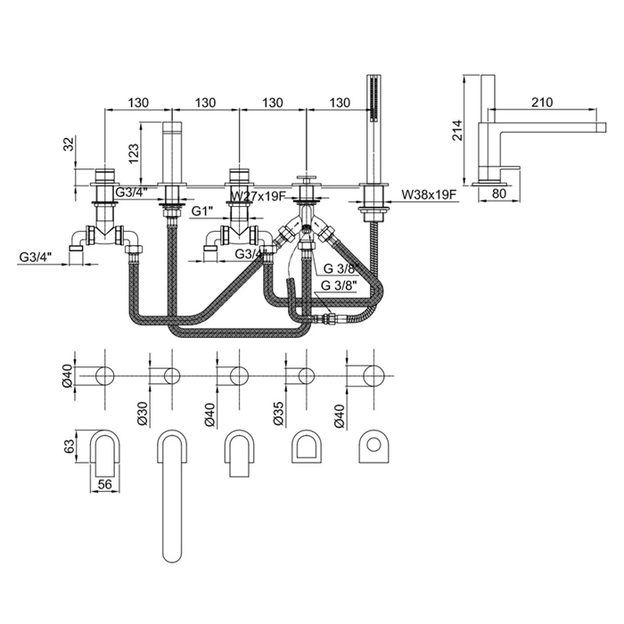 Монтаж смесителя для ванны Fantini Mare стандартный, что упрощает его интеграцию как в новые, так и в реконструируемые санузлы. Важно доверить инсталляцию профессионалам для гарантии долговечной и бесперебойной работы всех механизмов.