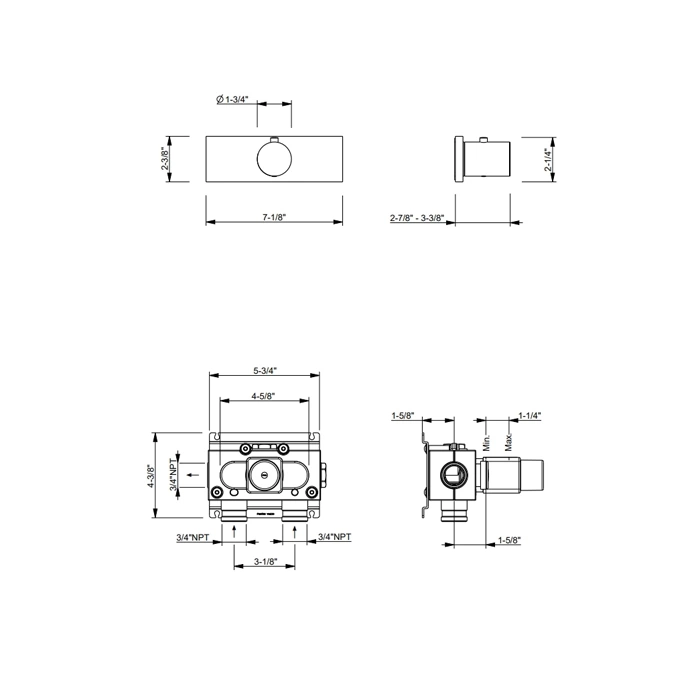 В комплект входит термостатический картридж, регулировочная рукоятка температуры, рукоятка расхода воды (лоток/душ), лицевые панели (рамки) и необходимый монтажный набор для встраивания. Душевая стойка, шланг и лейка приобретаются отдельно.