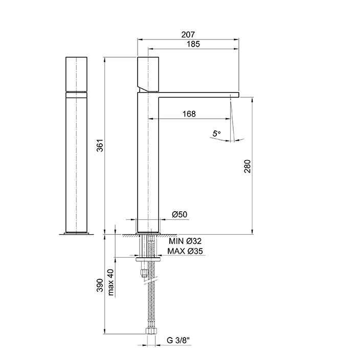 Смеситель Fantini Milano 31 93 3006WF предназначен для установки в одно монтажное отверстие на раковине или столешнице (так называемый «моно-монтаж»). Стандартный диаметр отверстия для установки - 35 мм.