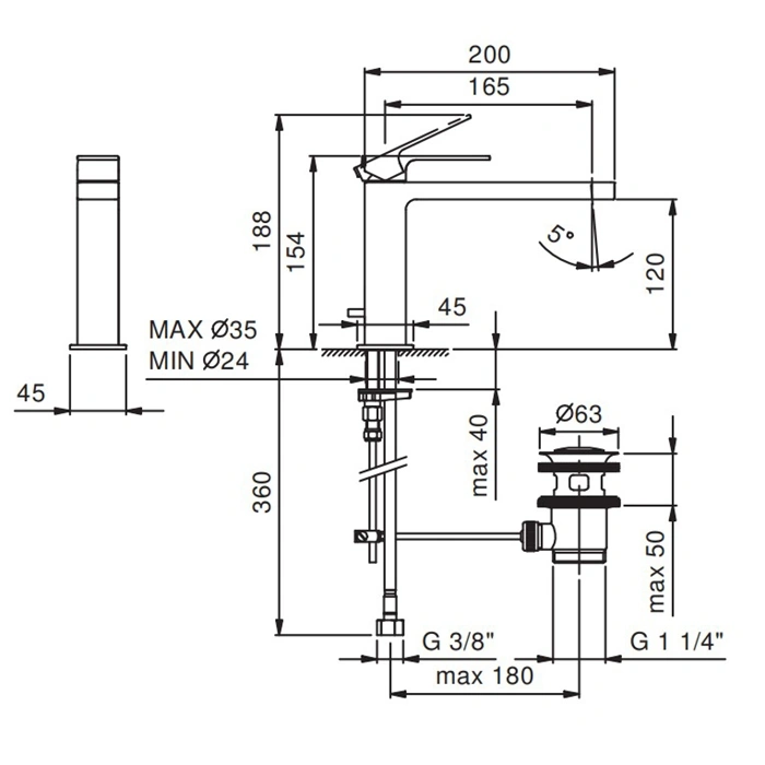 Обратите особое внимание на наличие в комплекте донного клапана. Это не просто «приятный бонус», а критически важный элемент для любой современной раковины. Он позволяет быстро перекрыть сливное отверстие, не нагибаясь и не пачкая руки. В модели Fantini Mint клапан механический, а не пружинный. Это более надежная и долговечная конструкция: меньше шансов, что он выйдет из строя или начнет подтекать через полгода использования.