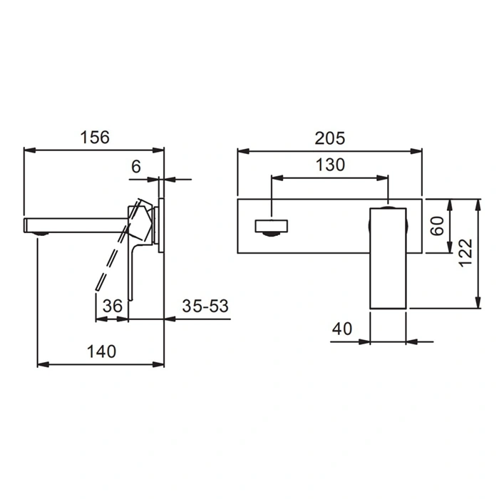 - Тип установки: настенный, на 2 отверстия (для подводки горячей и холодной воды).
