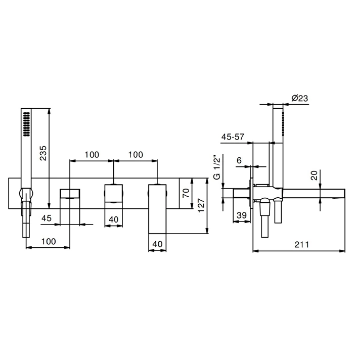Смеситель для ванны Fantini Mint со встраиваемой установкой и ручным душем (34 93 F721B)