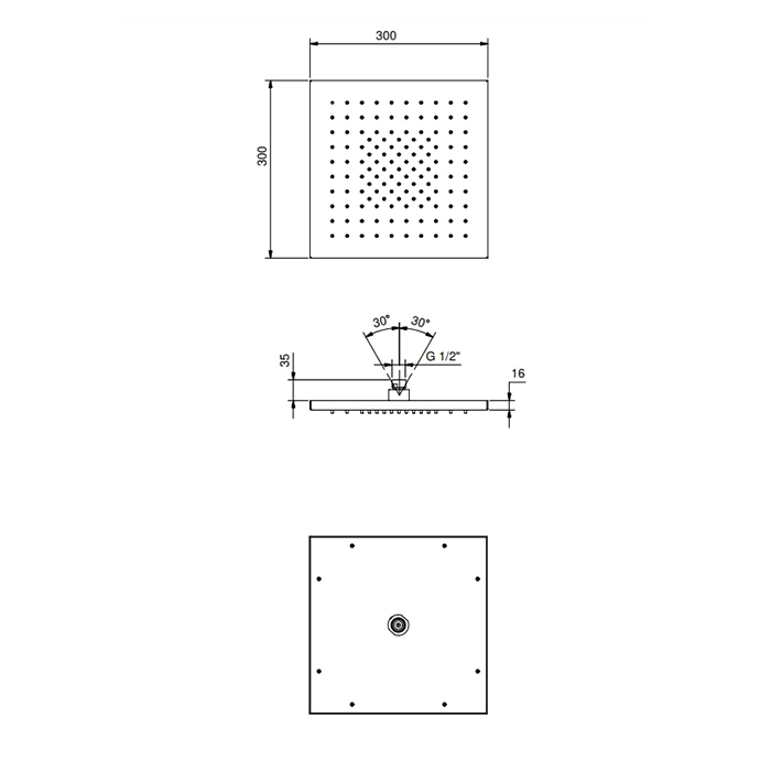 Данная модель спроектирована как верхний источник воды, создающий равномерный и комфортный поток. Квадратный формат 30 на 30 см оптимально вписывается в большинство планировок душевых кабин и открытых зон. Матовая поверхность из натуральной стали не только выглядит стильно, но и практична: на ней практически не остаются следы от капель воды и разводы.