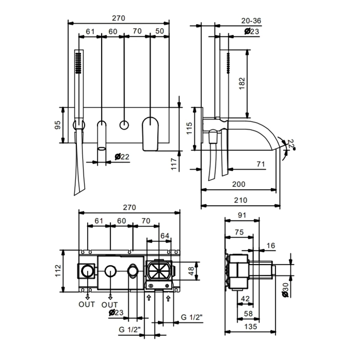 Как инженер с многолетним опытом, я настоятельно рекомендую тщательно планировать размещение элементов управления и излива до начала чистовой отделки ванной комнаты. Для модели Fantini MYO критически важно точно соблюсти размеры ниши и толщину перегородки (стены, экрана), чтобы лицевая панель смесителя легла идеально ровно, без перекосов. Малейший наклон может привести к подтеканию воды за панель и повреждению конструкции.