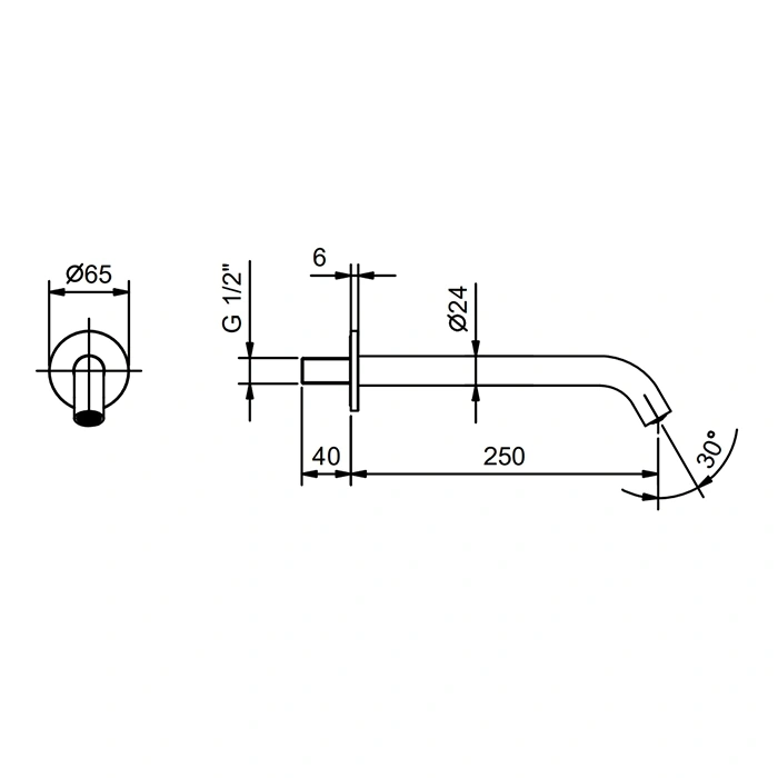 - Универсальный размер 250 мм делает излив применимым в большинстве сценариев.