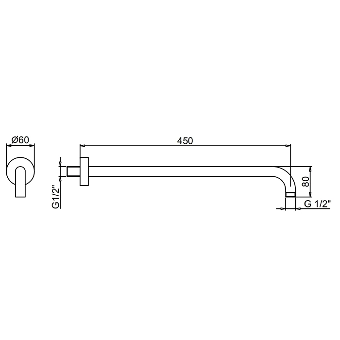 Данная модель имеет фиксированный вынос от стены, равный 45 сантиметрам. Это стандартный размер, обеспечивающий удобное позиционирование душевой лейки.