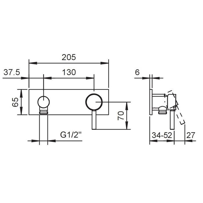 Данная модель представляет собой встраиваемый термостатический смеситель для душа. Он предназначен для систем с одной точкой водоразбора (душ) и требует подключения к горячей и холодной воде для поддержания стабильной заданной температуры.