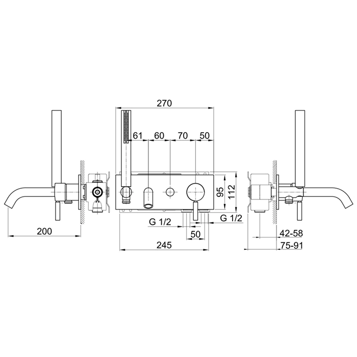 «Встраиваемый» означает, что основная часть корпуса смесителя (инсталляция) монтируется в стену или специальную панель, снаружи остаются только элементы управления (вентили) и излив. «Двухвентильный» указывает на тип управления водой: отдельные вентили для горячей и холодной воды, что позволяет точно регулировать температуру и напор.