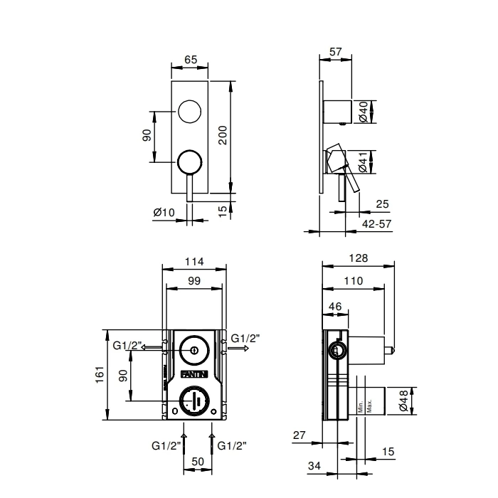 Fantini NOSTROMO: Встраиваемый смеситель для душа, хром (50 02 G485B)