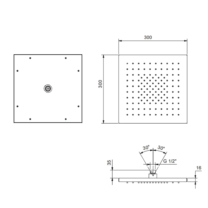Обратите внимание на размер 300х300 мм. Это оптимальный формат для комфортного пользования: вода распределяется по телу равномерно, создавая эффект настоящего тропического ливня. При этом панель не выглядит громоздкой и не «съедает» визуальное пространство даже в компактной ванной.